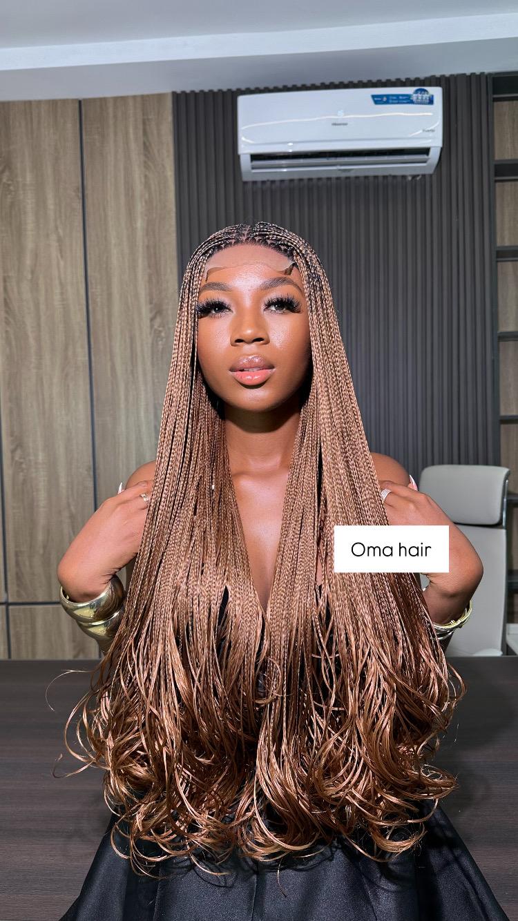 Oma hair boho French curl braided wig in GINGER PEARL MUSHROOM and CHOCOLATE mix